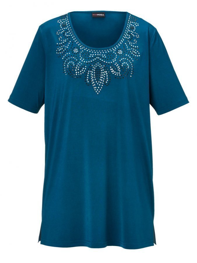 Hienostunut ja kaunis paita. Pääntiessä on viehättävä, himmeästi hohtava, ornamenttimaiseksi kuvioksi koottu koristekivisomistus. Kauniisti laskeutuvaa, ohutta materiaalia.