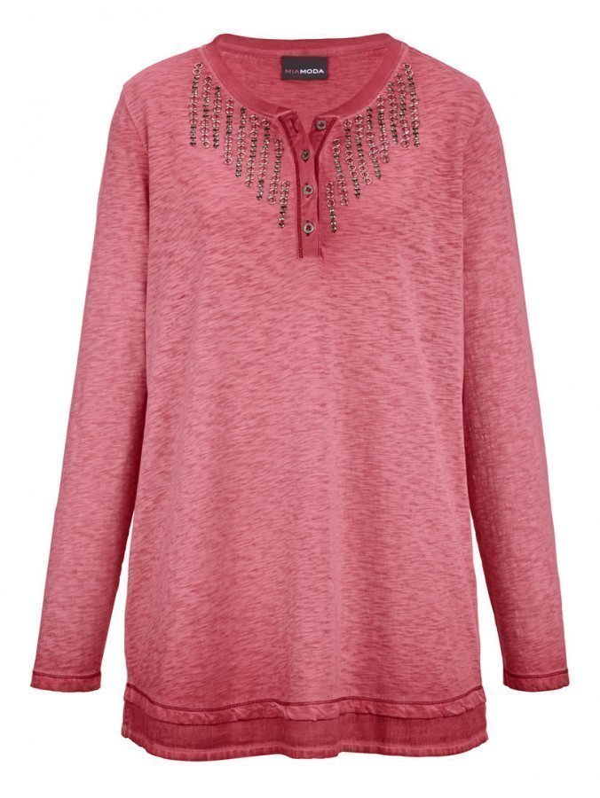 Paita, joka on kuin koru vapaa-ajan vaatevalikoimaasi! Painonapillinen pääntie on somistettu niiteillä ja pienillä renkailla, helmassa on trendikäs kerrosvaikutelma. Muodikas pesu tekee niin ikään vaikutuksen! Paita on valmistettu puhtaasta, korkealaatuisesta puuvillasta, joten ihoystävällinen käyttömukavuus on taattu.