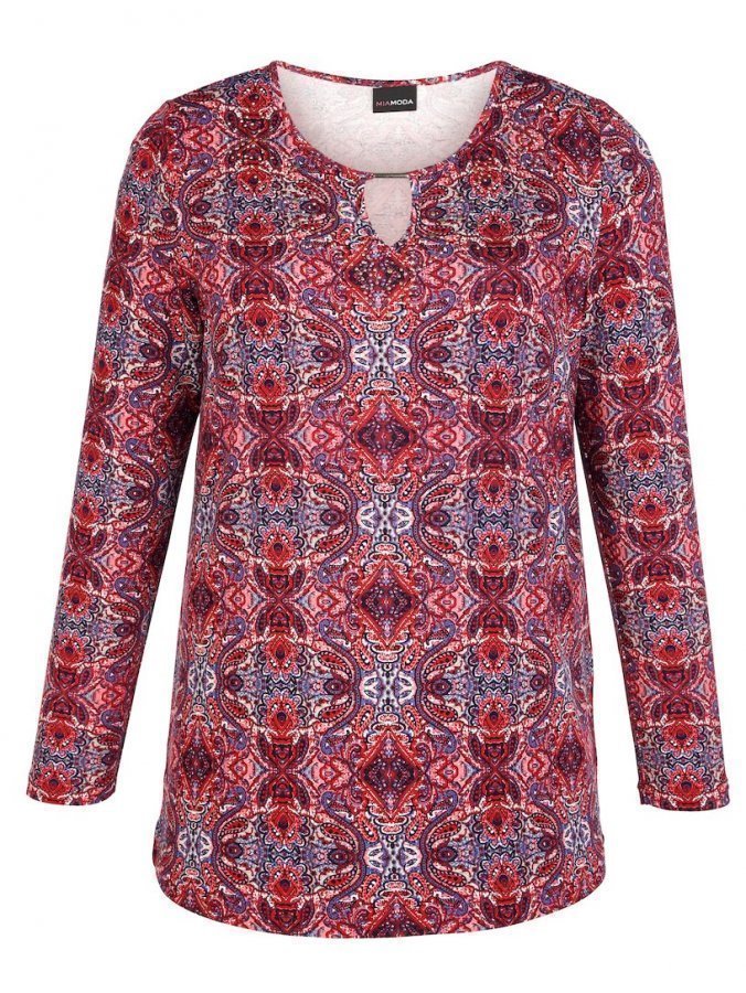 Loistavan värinen paisley-printti tekee tästä paidasta todella viehättävän. Koristesolki, pääntien koristesoljet ja -niitit sekä pääntien pieni halkio antavat paidalle jännittävän ilmeen. Pehmeästi laskeutuva viskoosi korostaa vartalosi linjoja. Stailausvinkki: paita sopii erinomaisesti yhteen sinisten farkkujen kanssa!
