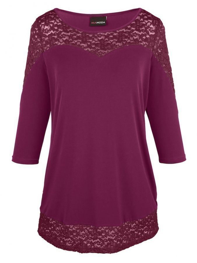 Pitkän mallinen yksivärinen paita. Pääntiessä, olkapäillä, 3/4-hihoissa ja helmassa tehosteena samansävyistä, kevyesti läpikuultavaa pitsiä. Erinomainen yhdistelmä esimerkiksi leggingsien kanssa.