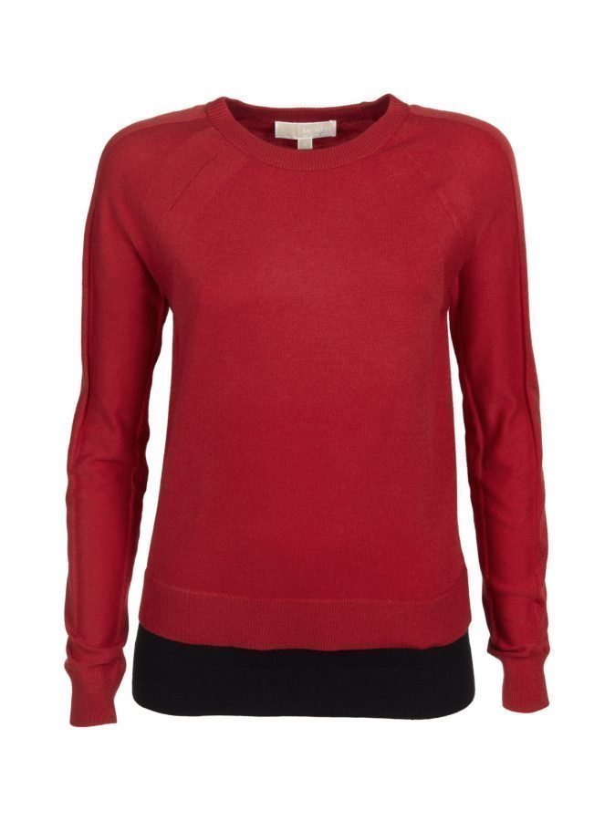 Raglanhihaisessa neulepaidassa on pyöreä pääntie ja resorit helmassa ja hihansuissa. Alareunaan on ommeltu kontrastivärinen kaksoishelma.