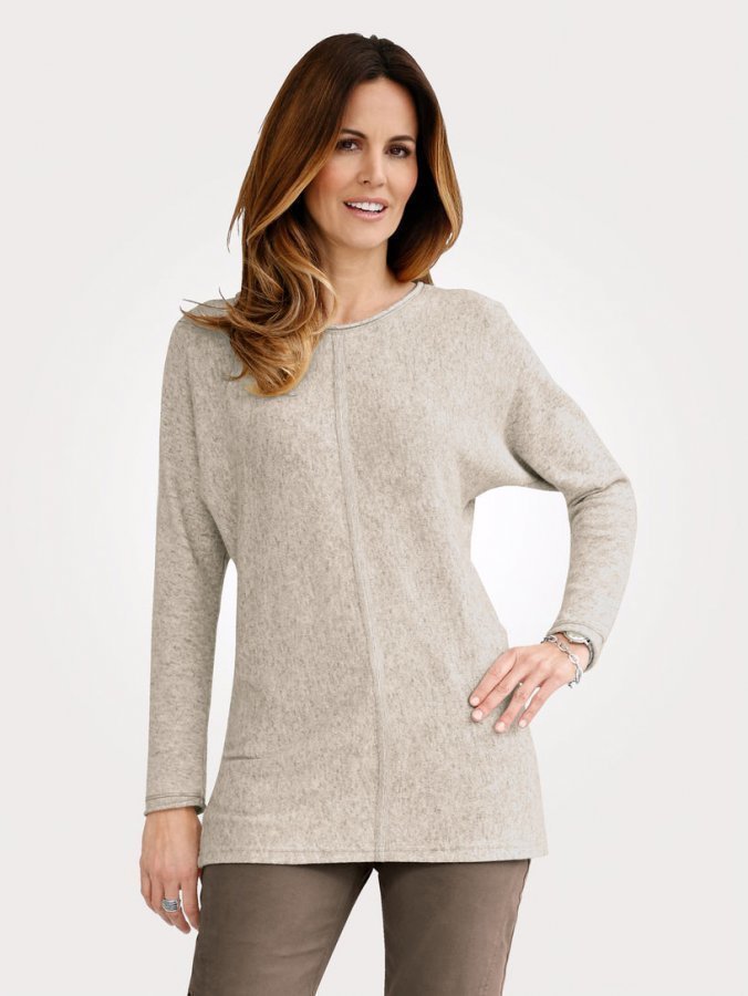 Laadukkaasta neulepuserosta valmistettu neulepusero MONA-mallistosta. Pääntiessä ja hihoissa on muodikkaat rullareunat. Etu- ja takaosissa on trendikkäät koristekaitaleet. Pehmeä sekoitemateriaali sisältää puuvillaa, viskoosia ja lämpöistä villaa.
