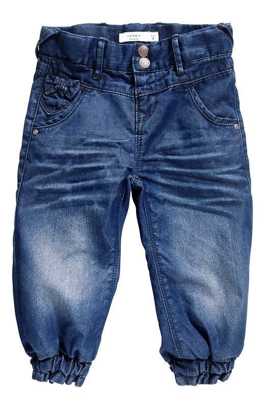 Name It baggy jeans, 5-taskumalli jossa niittejä taskuissa sekä leveät resorit lahkeensuissa. Säädettävä… Lue lisää »