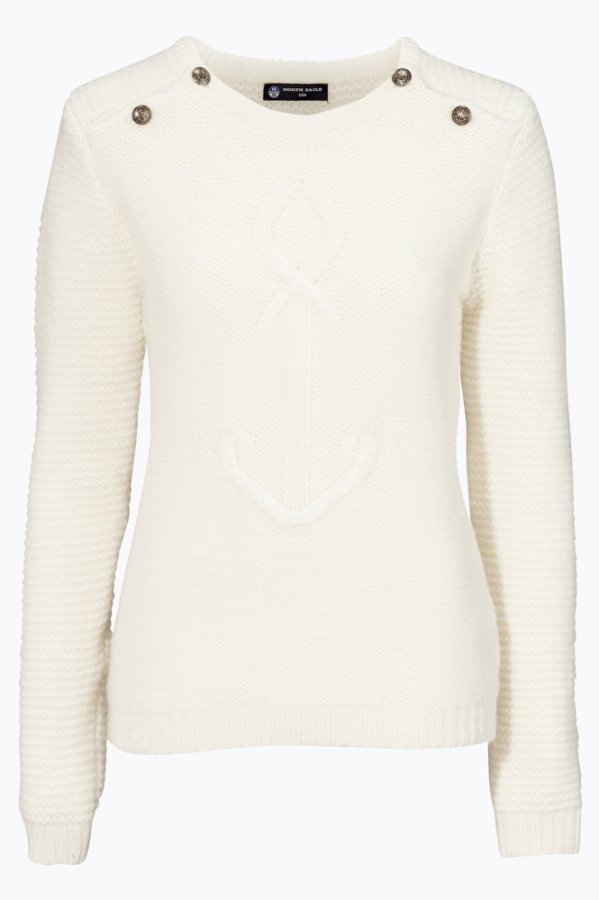 North Sails Mgl gGirocollo -neulepusero pehmeää kuvioneuletta. Edessä neulottu ankkurikuvio. Olkapäillä edessä metalliset ankkurinapit. Resori pääntiessä, hihansuissa ja helmassa. Pituus n. 61 cm koossa 38. 46% akryyliä, 32% polyamidia, 17% villaa, 5% alpakanvillaa Istuvuus: regular Käsinpesu.