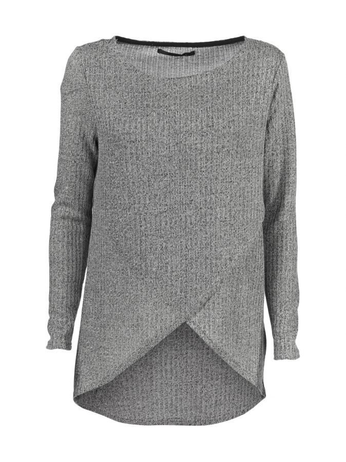 Lomittain asettuvat etukappaleet ja takaa pidempi helma antavat Onlyn kevyelle neuleelle kiinnostavan ilmeen, joka piristää asua.