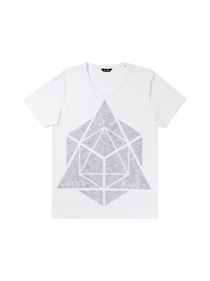 Lyhythihaisessa t-paidassa on sisäpuolella painatus, joka kuultaa materiaalin läpi. Materiaali on 50 % puuvillaa ja 50 % polyesteriä. Konepesu 40 °C.