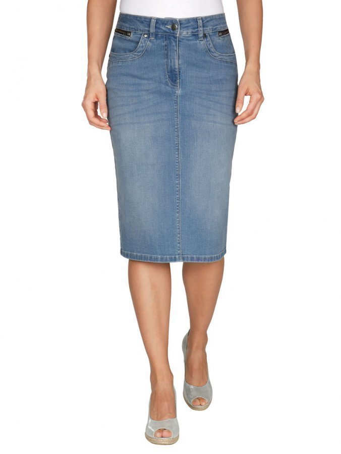 Trendikäs farkkuhame, jossa tehosteväriset ompeleet. Takana helmassa lisää liikkumavaraa tuova halkio. Koristevetoketjuilla somistetut etutaskut, kahdet takataskut.