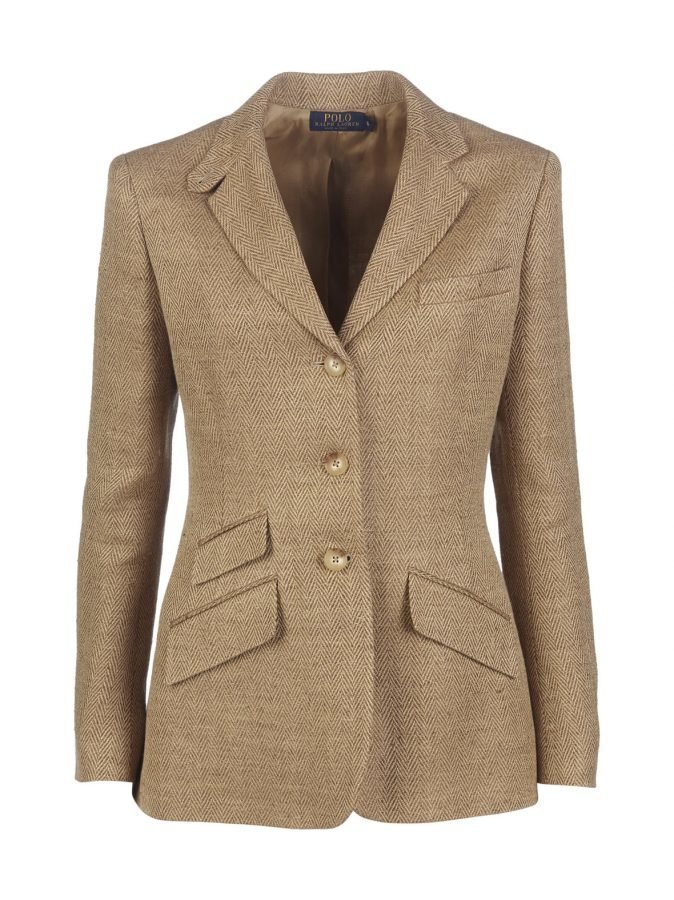 Upea englantilaistyylistä ratsastustakkia muistuttava jakku saa pintansa ajattomasta herringbone-kuviosta. Miellyttävän tuntuinen materiaali on ylellistä pellava-silkkisekoitetta. Jakussa on läpälliset etutaskut ja kaksi somistetaskua. Hihansuissa on somistenapit ja kauluksen sisäpuolella yksivärinen kangas, jonka voit kääntää esiin halutessasi vaihtelua jakun ilmeeseen. Jakun sisäpuolella on sileäpintainen vuorikangas ja takana helmassa halkio. Jakku suljetaan kolmella napilla.
