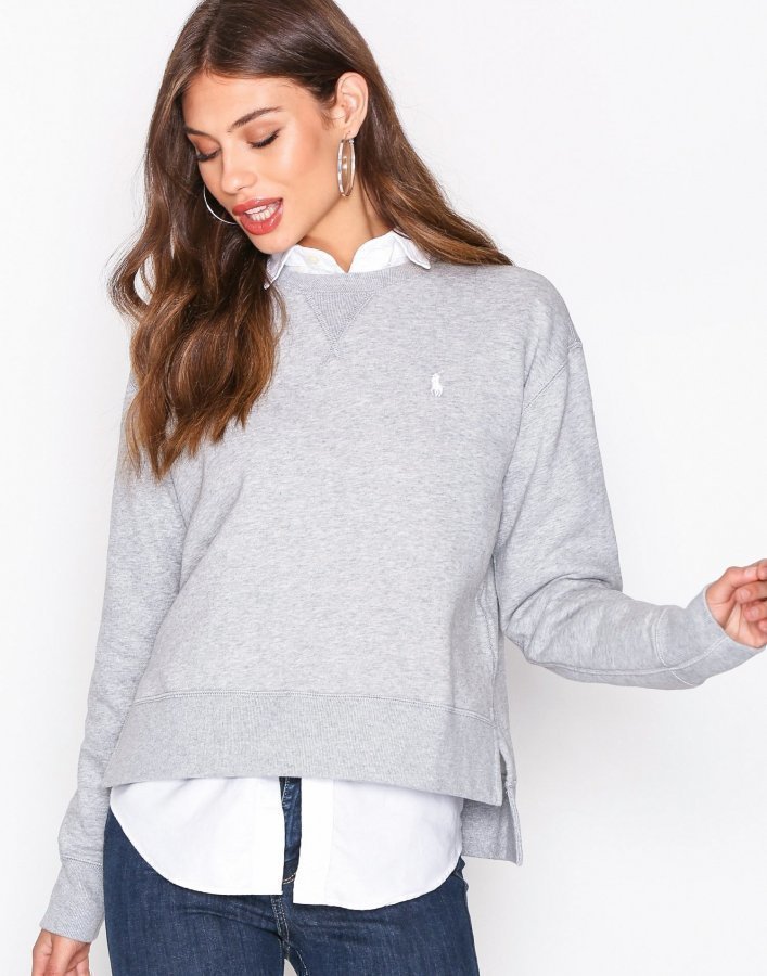 Polo Ralph Lauren -svetari. Pitkähihainen malli, jossa pyöreä kaula-aukko. Ribbineulotut resorit pääntiessä, hihansuissa ja helmassa. Kirjailtu logo edessä. Halkiot sivuilla. Hieman pidempi takaosa. Valmistettu 60 % puuvillasta ja 40 % polyesterista. Malli: Malli on 175 cm pitkä ja käyttää kokoa Small. Tuotenumero: 135923-8389. Väri: Andover. Kategoriaryhmä: Vaatteet / Puserot / Sweatshirts. Koot: X-Small, Small, Medium, Large. Kohderyhmä: Naiset.