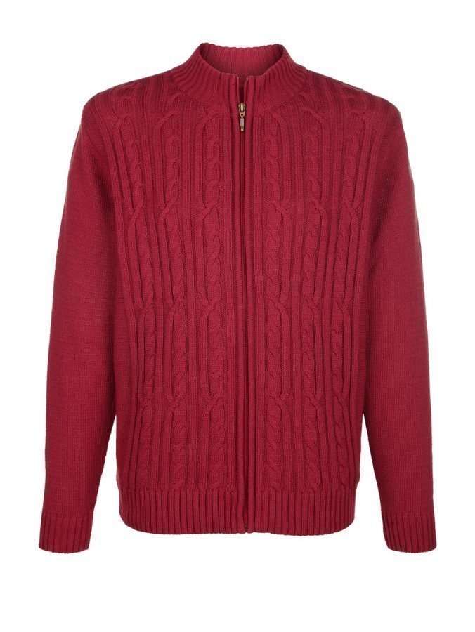 Tyylikäs neuletakki, jossa on pystykaulus ja kantattu vetoketjusuljenta. Etuosassa on palmikkoneulosta. Hihansuissa ja helmassa on joustavat resorit.