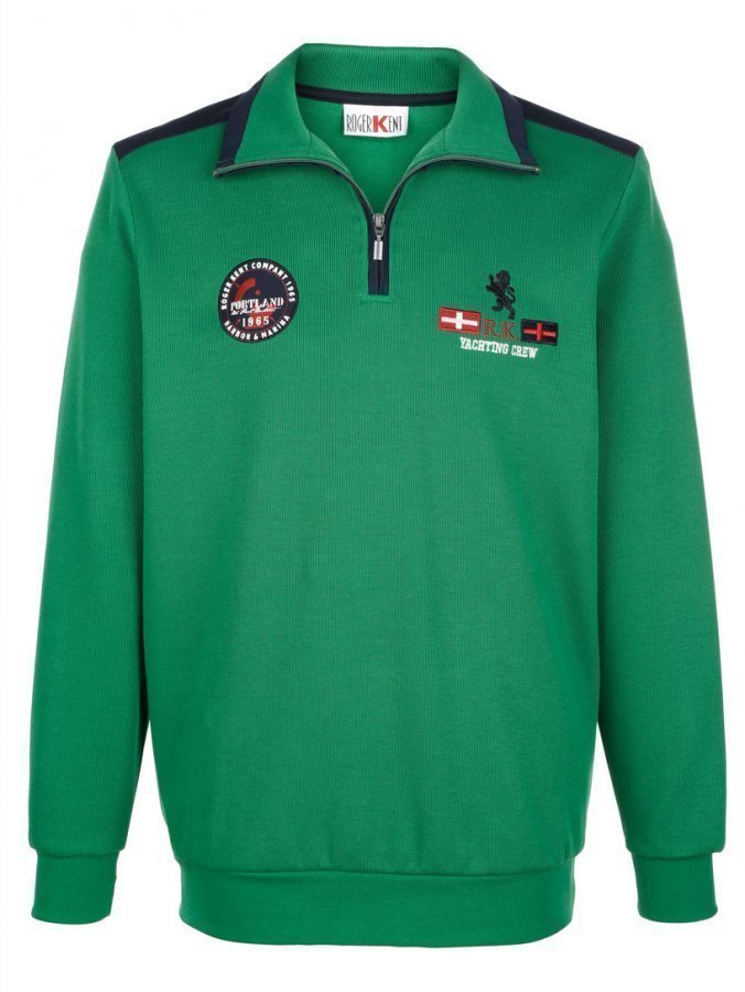 Rento svetari, jossa on tehostevärisesti somistettu vetoketjukaulus hartiat. Rinnassa vasemmalla puolella on tehosteväristä kirjontaa ja oikealla puolella on merkki. Helmassa ja hihansuissa on resorit.