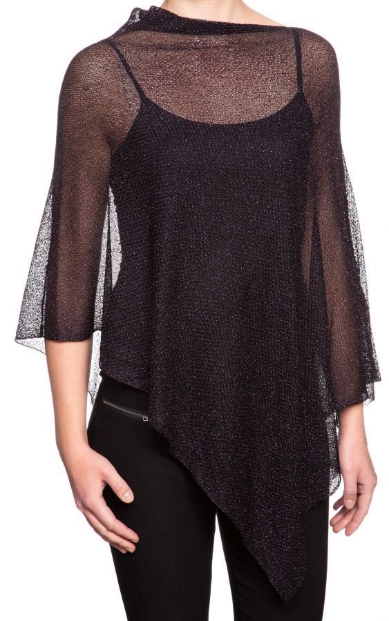 Naisten juhlava, ohut neuleponcho. Lanka hieman kimaltavaa ja neulos harsomaista. Materiaali: 90% viskoosia, 10% polyesteria…. Lue lisää »