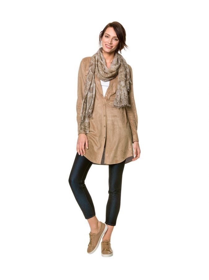 Rennossa keinomokkamekossa on kauttaaltaan rei’itetty kangas, pitkät hihat painonapeilla ja rintataskut miehustassa. Suoranmallinen mekko suljetaan painonapeilla ja helma on hieman pyöristetty. Mekon pituus koossa S on 91 cm.Materiaali on 100 % polyesteriä. Konepesu 30 °C.