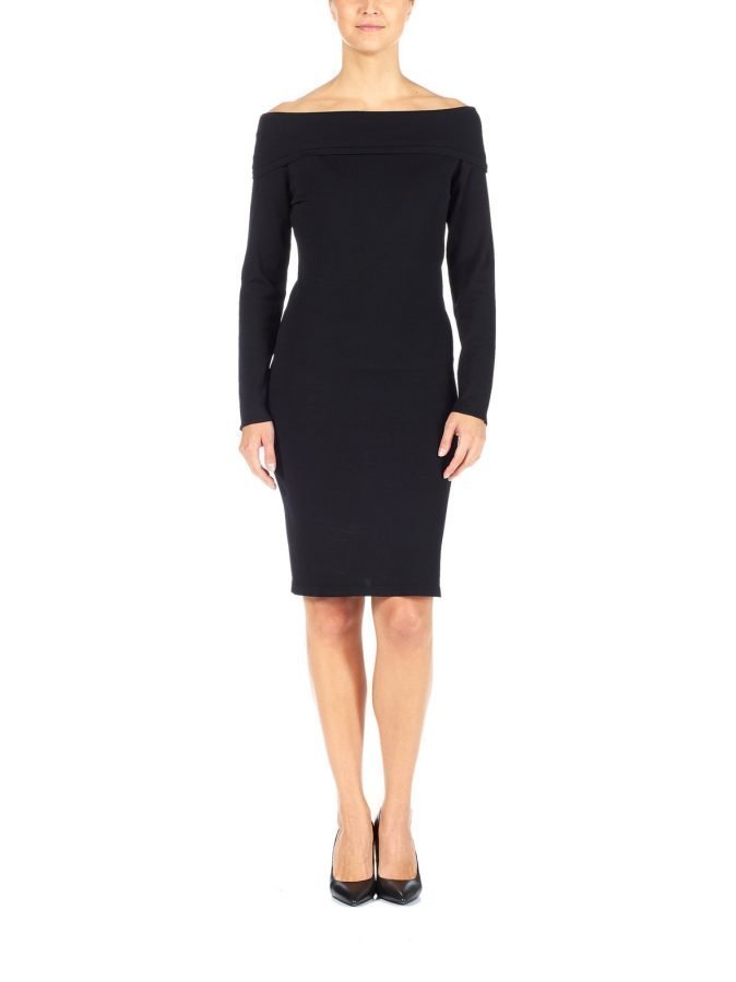 Kauden naisellinen trendi, off shoulder -pääntie, koristaa tätä eleetöntä neulemekko. Kauniisti olkapäät paljastava mekko on ohutta ja sileää neulosta.
