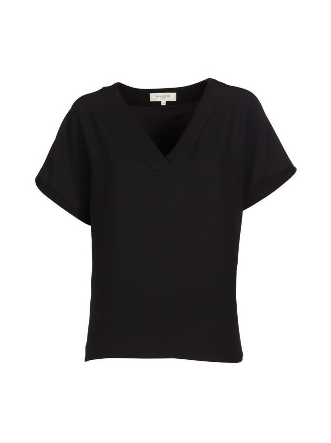 Selected Femmen keveässä SfNewSmile-puserossa on tyylikäs v-pääntie. Väljänmallisen puseron helma on takaa pyöristetty ja pidempi kuin edestä.