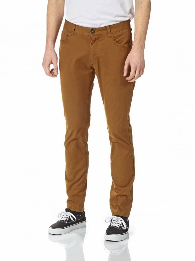 Chinohousuissa on kapenevat lahkeet. Housuissa on normaali vyötärö ja etuhalkiossa vetoketju ja nappi. Mallilla on yllään koon 32/32″” housut. Mallin pituus on 187 cm.