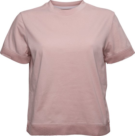 Paita, jonka hihansuut ja helma ovat verkkomateriaalia. Paita Naisten koot 60% ekologisesti kestävää puuvillaa ja 40% polyesteriä