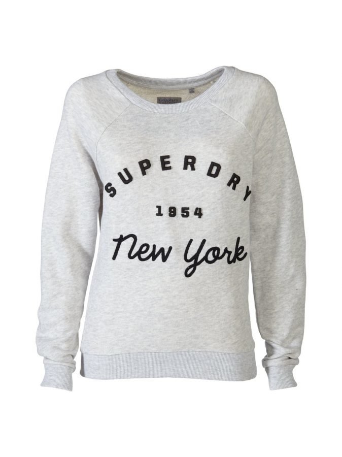 Rennossa svetarissa on raglanhihat ja miehustassa tesktiapplikointi. Materiaali on joustavaa jerseytä. Helmassa ja hihansuissa on resorit. Yhdistä farkkuihin tai käytä kotona collegehousujen kanssa!