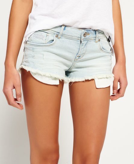 Naisten Superdry Core -farkkusortsit. Klassiset farkkusortsit, joissa on rispaantuneet lahkeensuut. Napilla ja vetoketjulla varustettu viisitaskumalli. Sortseissa on myös kirjailtu Superdry-logo kolikkotaskussa ja kohokuvioitu, nahkainen logomerkki takana vyötäröllä.