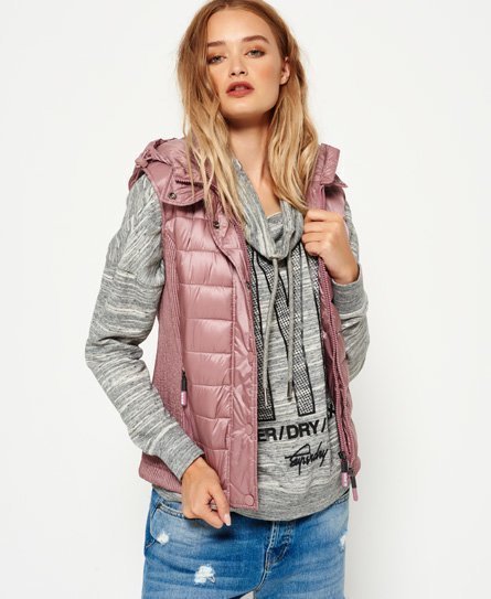 Naisten kahdella vetoketjulla varustettu Superdry Luxe Fuji -toppaliivi. Klassisen Fuji-toppaliivin hupullinen versio, jossa on kaksikerroksinen vetoketjukiinnitys ja painonapit pitämässä tuulen loitolla. Liivissä on topattu vartalo-osa, joustavasta ribbimateriaalista valmistetut sivukappaleet ja kaksi vetoketjutaskua. Myös huppu on topattu, ja siinä on joustava säätönyöri. Mallin päällä oleva koko: Small Mallin pituus: 178 cm Mallin rinnanympärys: 81 cm Tiukka istuvuus