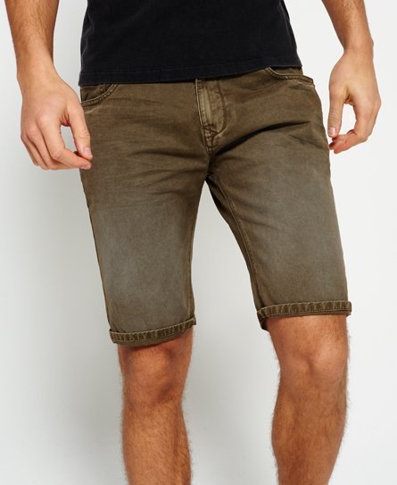 Miesten Superdry Worn Wash -farkkusortsit. Tiukoissa farkkusortseissa on vintage-henkinen kulunut ilme, viisi taskua ja vetoketjusepalus. Sortsit on viimeistelty kolikkotaskun kirjaillulla Superdry-logolla, vyötärön selkäpuolen kohokuvioidulla logolapulla sekä Superdry-niiteillä.