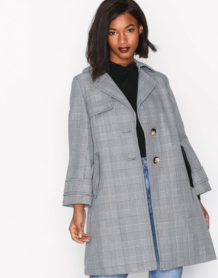 Topshop pitkätakki. Pitkä, oversize-malli nappi-kiinnityksellä edessä ja kauluksella. Kaksi etutaskua. Valmistettu 63 % Polyesterista ja 37 % Viskoosista. Malli: Malli on 175 cm pitkä ja käyttää kokoa EU 36. Tuotenumero: 353967-7627. Väri: Monochrome. Kategoriaryhmä: Vaatteet / Takit / Pitkät takit. Koot: EU 34, EU 36, EU 38, EU 40, EU 42, EU 44. Kohderyhmä: Naiset.