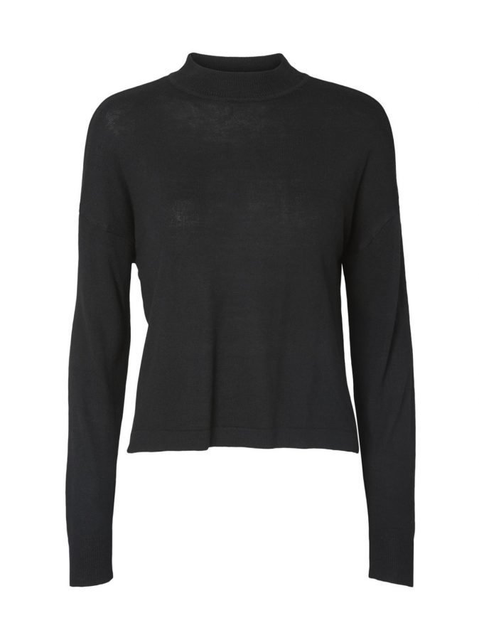 Pelkistetyn tyylikkäässä neuleessa on poolokaulus ja joustavat resorit hihansuissa. Pooloneule sopii yhdistettäväksi niin hameiden kuin housujenkin kanssa.