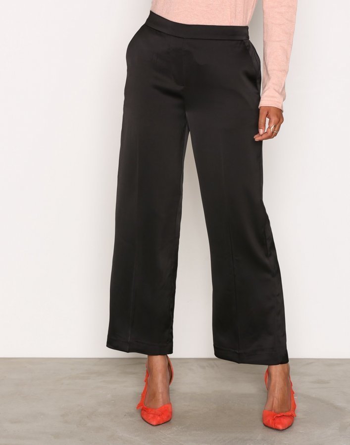 Vero Moda housut. Loose fot malli vyötäröresorilla ja sivutaskuilla edessä. Valmistettu 50 % Kierrätetystä Polyesterista ja 50 % Polyesterista. Tuotenumero: 57953-0014. Väri: Musta. Kategoriaryhmä: Vaatteet / Housut & Shortsit / Housut. Koot: Small, Medium, Large, X-Small. Kohderyhmä: Naiset.
