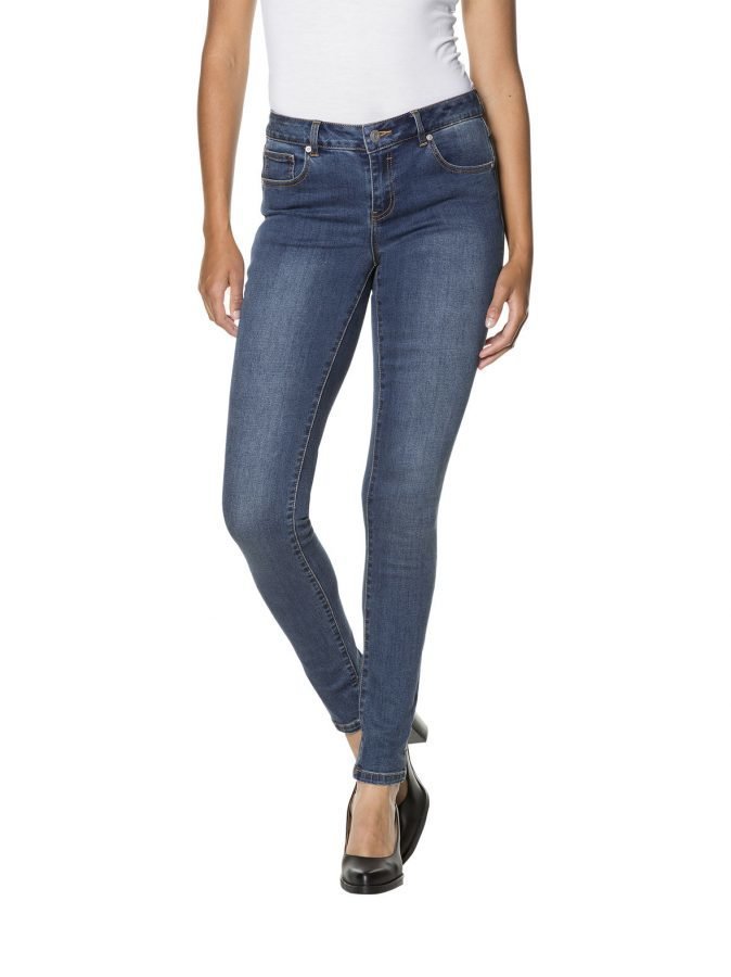 Deniminsinisissä viisitaskufarkuissa on skinny-mitoitus ja kapenevat lahkeet. Farkut suljetaan vetoketjulla ja napilla.Materiaali on 70 % puuvillaa, 23 % polyesteriä, 5 % viskoosia ja 2 % elastaania. Konepesu 30 °C.