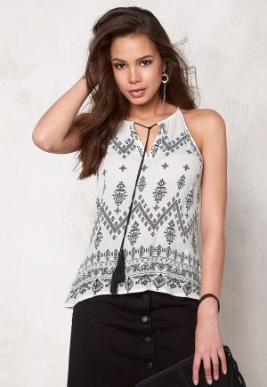 VILA kauniisti kuvioitu viskoosipaita. Pääntiessä nauhat tupsuilla. Selän pituus olalta mitattuna 54 cm,… Lue lisää »