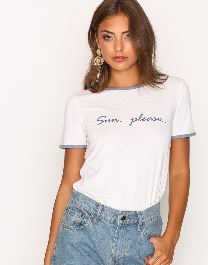 Vila t-paota. – Lyhythihainen, suora malli pyöreällä kaula-aukolla. Resori kaula-aukossa ja hihansuissa. Painettu printti edessä. Valmistettu 50 % Polyesterista, 38 % Puuvillasta ja 12 % Viskoosista. Malli: Malli on 170 cm pitkä ja käyttää kokoa Small. Tuotenumero: 51749-0001. Väri: Valkoinen. Kategoriaryhmä: Vaatteet / Paidat & Topit / T-Paidat. Koot: Medium, Large, X-Small, Small. Kohderyhmä: Naiset.