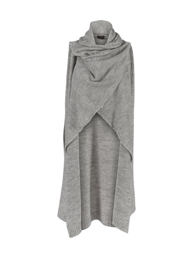 Edestä avoimen ViRiva-neuleliivin kaulus kietoutuu tuubihuivia muistuttavaksi pyörökaulukseksi painonapeilla. Kietoudu neuleliiviin ja yhdistä esimerkiksi mekkoon tai kapeisiin housuihin ja pitkähihaiseen trikoopaitaan.