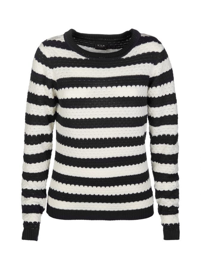 Mukavassa neuleessa yhdistyvät raikkaat raidat ja herkkä pitsineulos.