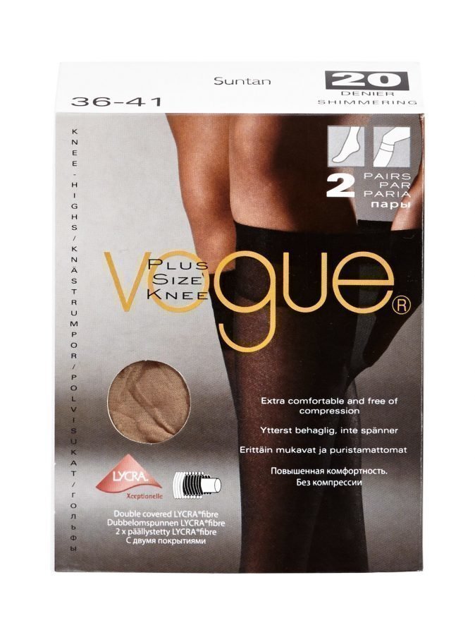 Erittäin mukavat ja puristamattomat 20 denierin polvisukat. Pakkaus sisältää kaksi paria sukkia.