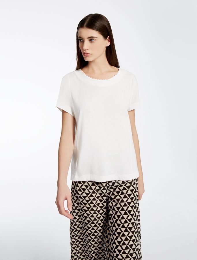 Naisten yksivärinen, lyhythihainen pusero joustavaa trikoota. Avara o-pääntie, jonka reunassa kauniit koristeet. Niskassa pieni strassiperhonen. Pusero on malliltaan reilu ja laatikkomainen. Koossa S pituus n.60 cm. Materiaali: 94% puuvillaa, 6% elastaania… Lue lisää »