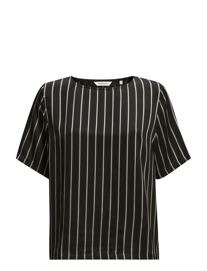 Won Hundred Valmistusmateriaali: 45% Viskoosi 55% Asetaatti Väljä, laatikkomainen istuvuus Väljät hihat Pystysuorat raidat