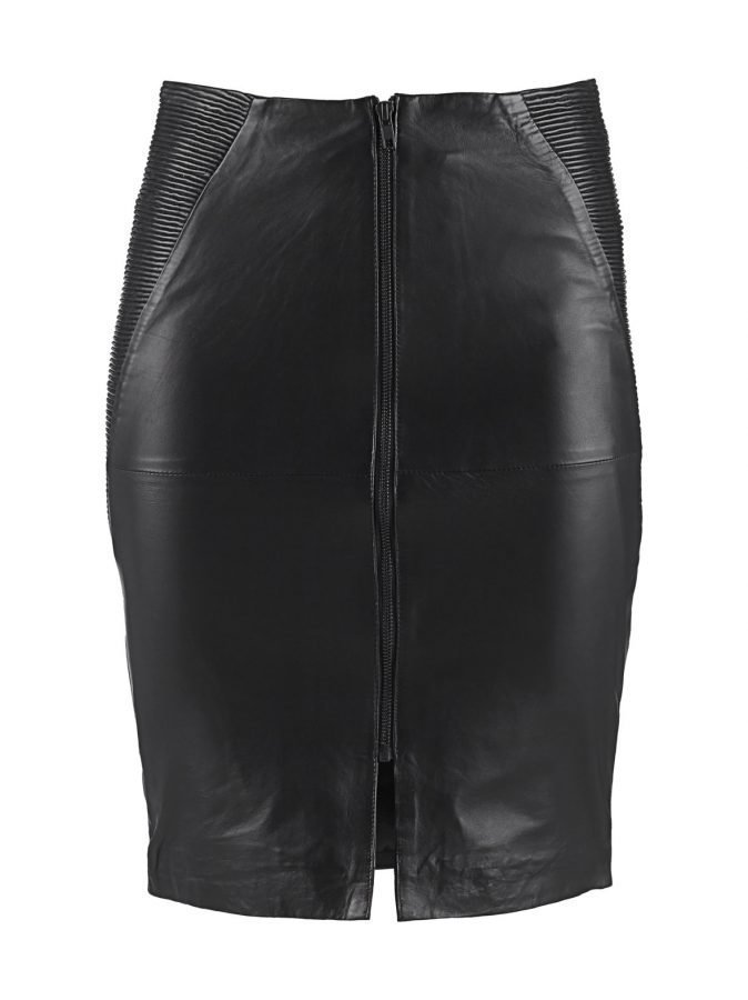 Nahkaisessa kynähameessa on sivuilla tiheät tikkaukset ja takana täysmittainen vetoketjuhalkio. Vuori on sileä ja kiiltävä. Pituus koossa 36 on 59 cm. Päällinen on nahkaa, vuori on 97 % polyesteriä ja 3 % elastaania. Ammattimainen nahkapesu.
