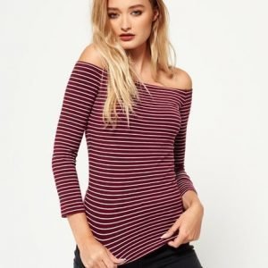 Superdry Raidallinen Breton Bardot Mekko Punainen